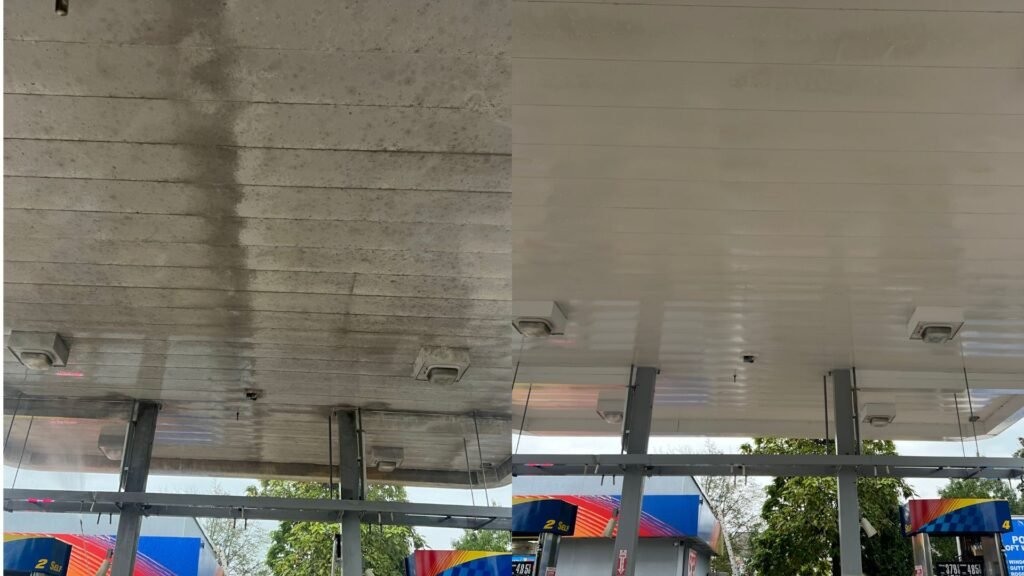 Maintain a clean, safe, and welcoming environment with professional gas station pressure washing. Specialized cleaning removes oil stains, fuel spills, gum, and grime from pump areas, concrete surfaces, canopies, and storefronts. Using high-powered equipment and eco-friendly detergents, every surface is restored to a spotless finish that enhances curb appeal and safety. With over 20 years of experience, King Glass Cleaning ensures gas stations stay clean, compliant, and inviting for every customer.