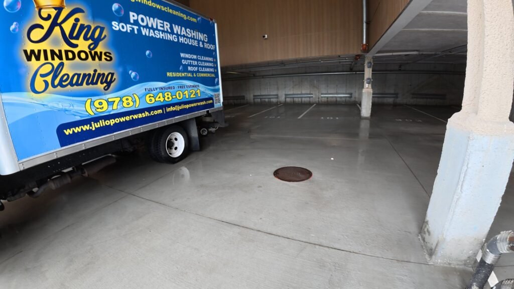 Enhance the appearance and safety of garages and parking lots with professional pressure washing solutions. Built-up dirt, oil stains, tire marks, and debris are effectively removed using high-pressure cleaning and eco-friendly detergents. This service helps prevent surface deterioration, reduces slip hazards, and improves the overall look of any property. With over 20 years of experience, King Glass Cleaning delivers thorough, reliable cleaning that keeps parking areas spotless and well-maintained.